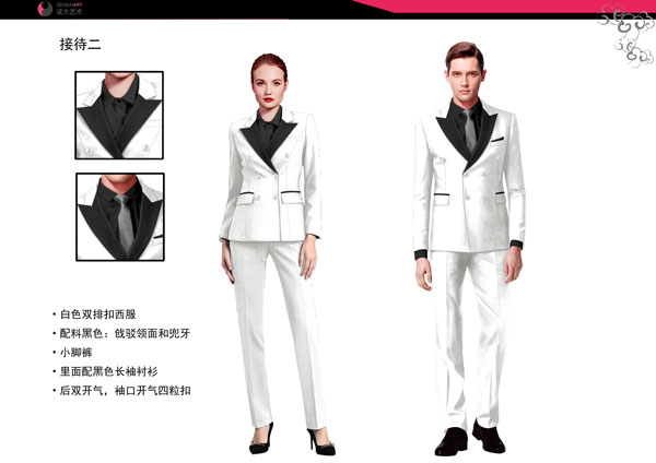 產(chǎn)品特點(diǎn):時(shí)尚的設(shè)計(jì),大方的版型,拉近與客戶之間的距離,適合各行業(yè)的前臺(tái)行政人員穿著。
